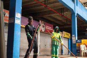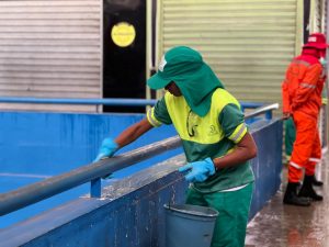 Incentivando a economia e garantindo o bem-estar aos mais de 1 mil permissionários e 4 mil pessoas que passam por lá diariamente, o Centro Comercial de Camaçari (CCC) recebeu grandes ações de higienização e manutenção. Durantes os ‘faxinaços’ foram feitas a limpeza da caixa de gordura, caixa de esgoto, limpa-fossa, lavagem e higienização de todos os setores do Centro Comercial – açougue, peixaria, praça de alimentação, hortifruti e camelódromo.